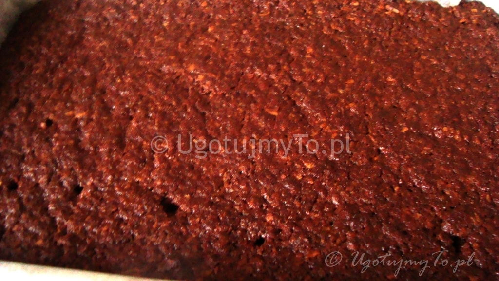 3. Wszystkie składniki polewy wymieszać w misce na gładką masę. Przełożyć na wystudzony spód. Odstawić na kilka godzin w temperaturze pokojowej.